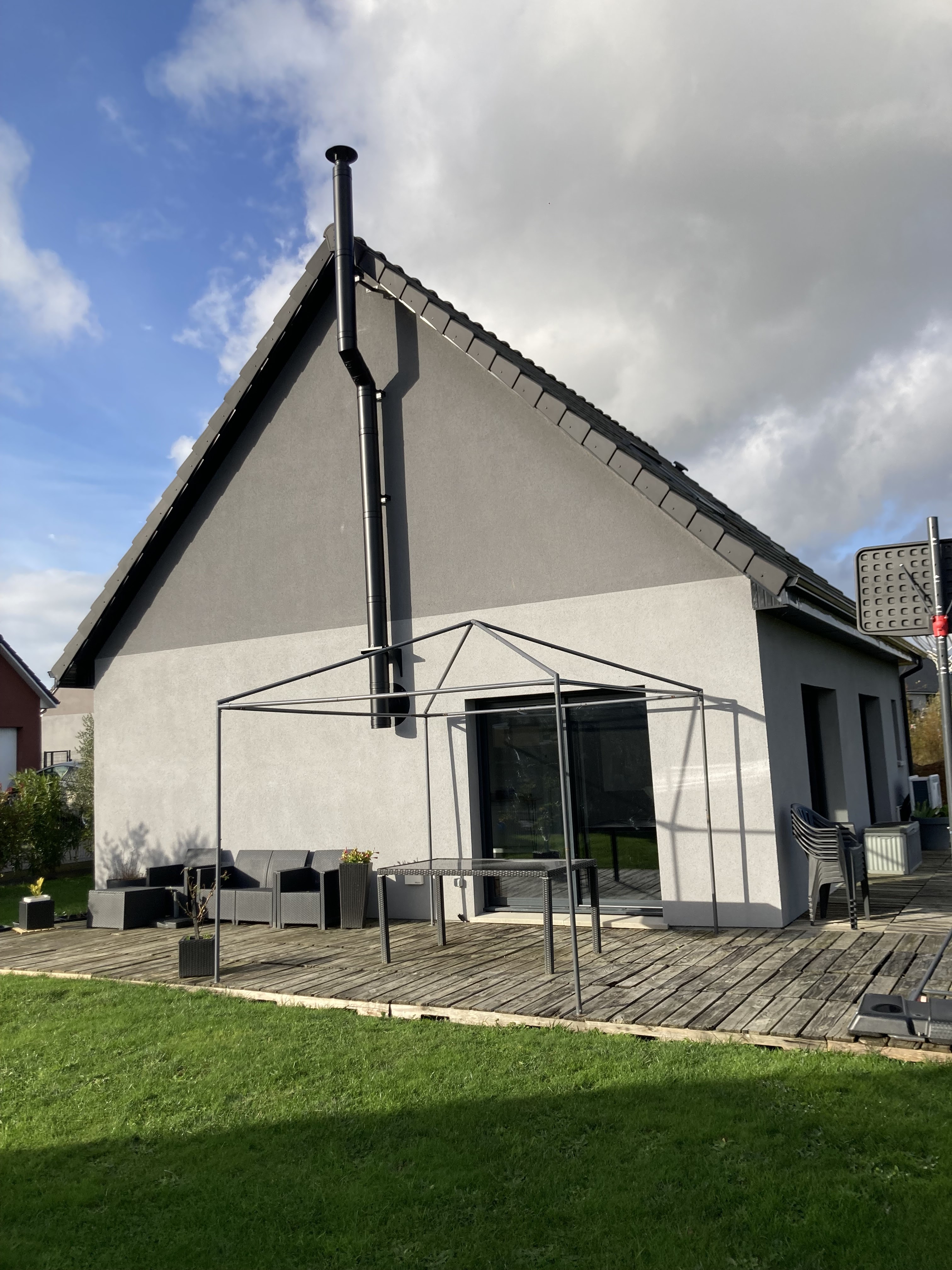Pose d’un poêle à bois avec conduit extérieur apparent, très satisfait une équipe de poseur très soignée et professionnelle pour un résultat parfait, nous recommandons vivement!!!